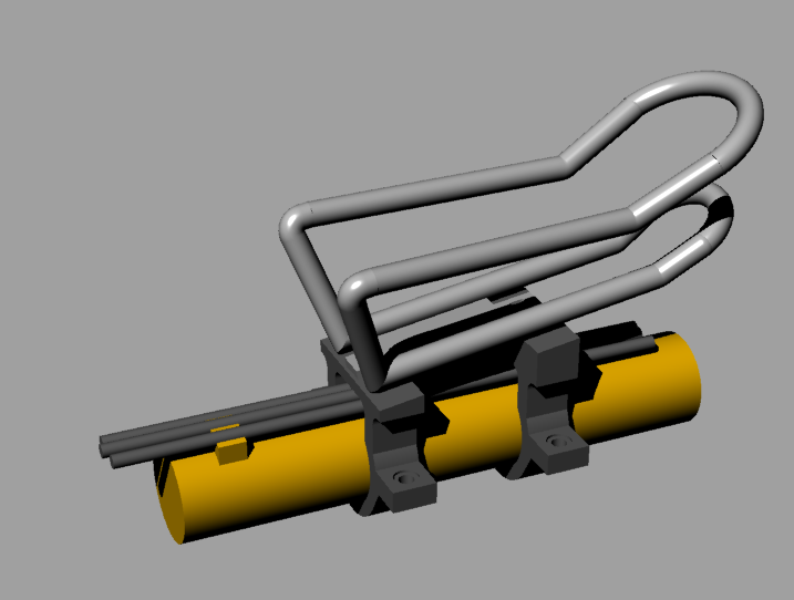 Montato il motore, al posto dei pedali e la batteria sul tubo obliquo dove c’era la borraccia, rimane solo il tubo orizzontale per riposizionare quest’ultima; poiché non esistono in commercio supporti già fatti per tale scopo, lo progettato, stampato e installato sulla bici.