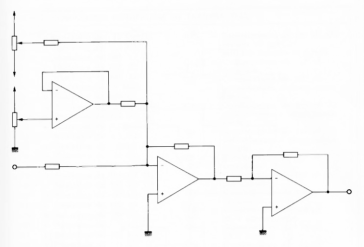 Il circuito del sommatore d'uscita è mostrato in figura 6: la sua funzione è quella di sommare altre tensioni a quelle provenienti dalla tastiera; lo scopo è quello di spostare (shiftare), la tensione in modo da poter variare le ottave utilizzabili e di correggere in sede di taratura eventuali «offset» dovuti ai circuiti di interfaccia.