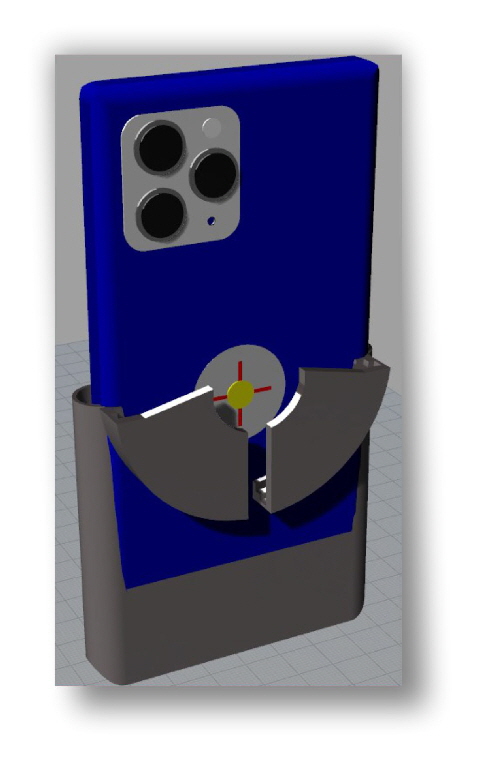 Infine creo la struttura per bloccare il caricatore wireless al supporto del cellulare in corrispondenza del logo del cellulare, dove c’è il sistema ricevente, dell’energia radiante necessaria per ricaricare la batteria.