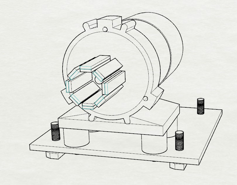 Con l’utilizzo di una stampante 3D è possibile stamparsi in proprio le strutture in plastica, per il supporto dei magneti interni ed esterni, affacciati ad una distanza di 3 mm, evitando qualsiasi contatto meccanico.